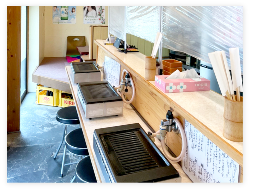 気軽に一人焼肉をお楽しみ頂くためのカウンター席や、ご家族や友人とのお食事に最適なテーブルのお席をご用意しております。お気軽にお立ち寄りください。
